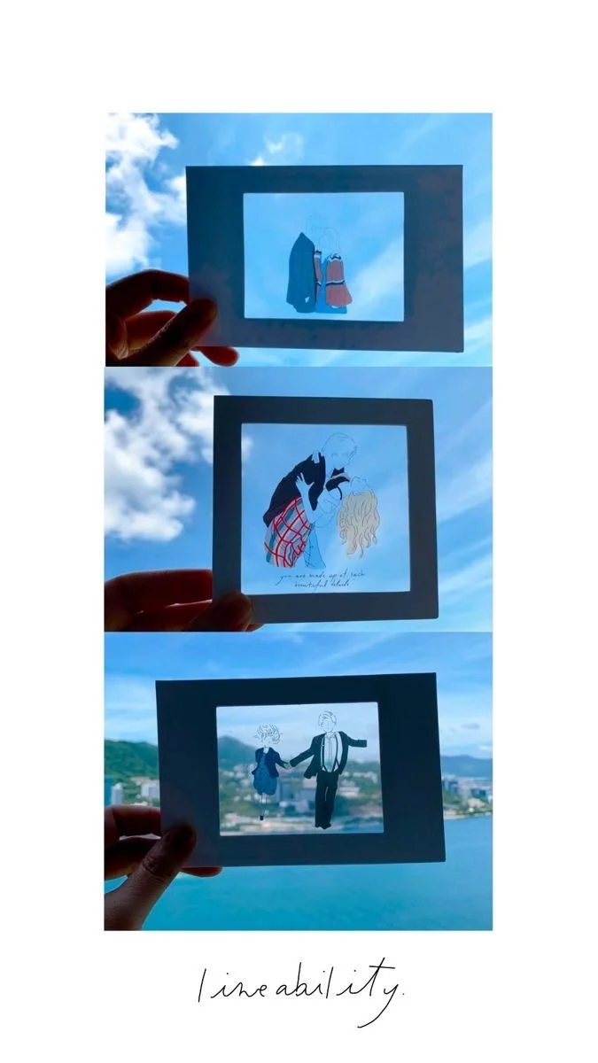 那時情況有一些混亂,我在同時跟着四位客人介紹着我的明信片裡所畫的電影跟它的故事。她們是同場的檔主,結伴過來看我的東西,大家有說有笑的,而這位客人就一直默默的聽着,邊在選明信片的款式,有時附和。